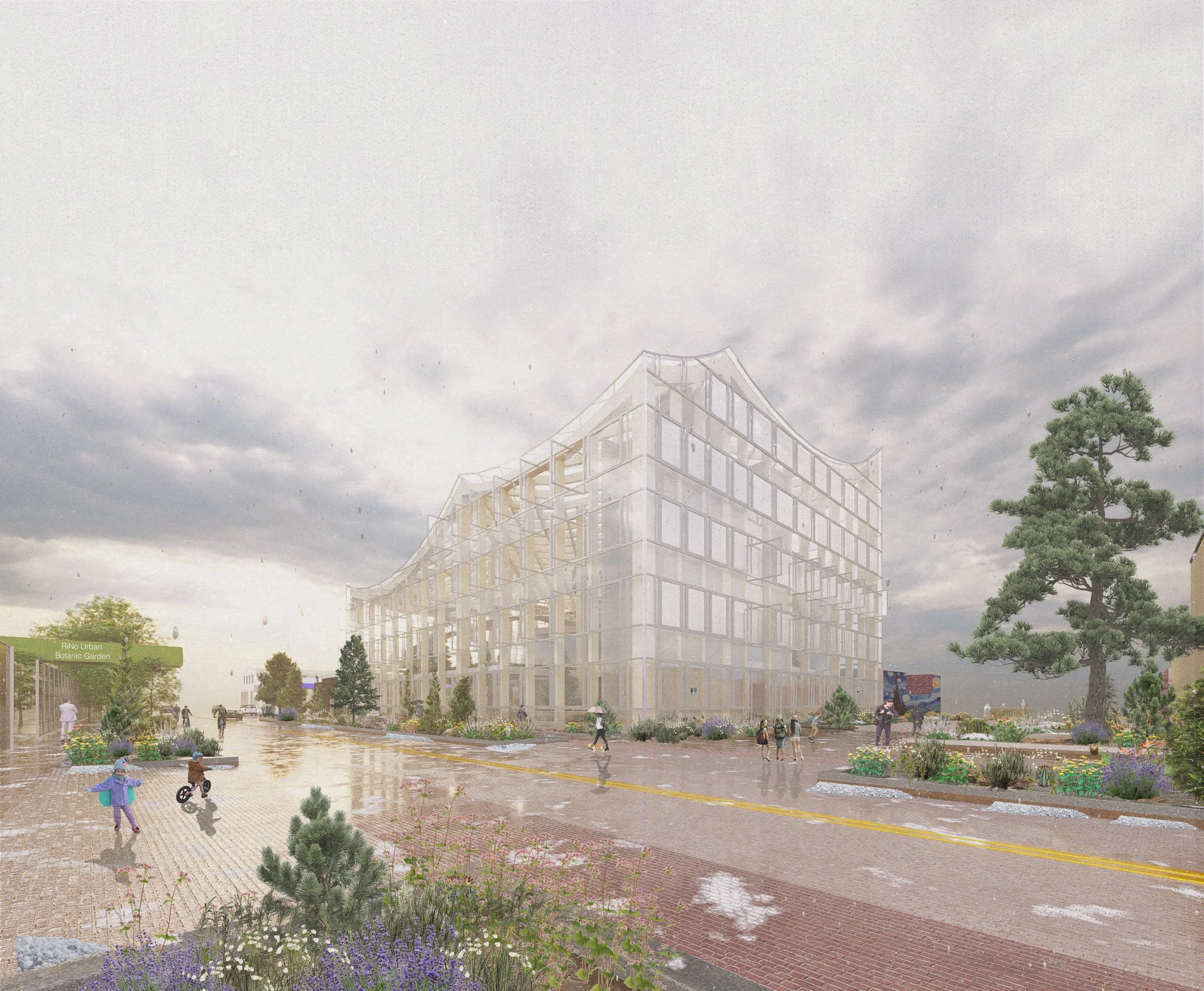 The urban botanical garden will be designed considering all the above mentioned. This building will bring much needed nature back into RiNo’s streetscape and community. It will offer a cultural and educational aspect to RiNo, which lacks any sort of botanical garden, aquarium, zoo, or large-scale museum. The design will include a welcoming approach that encourages the public of paying and non-paying alike to experience nature and architecture in one way or another. In addition, the upper level(s) of the building will act as residential space for experimental urban micro homesteads for employees and resident students of the botanical garden.
